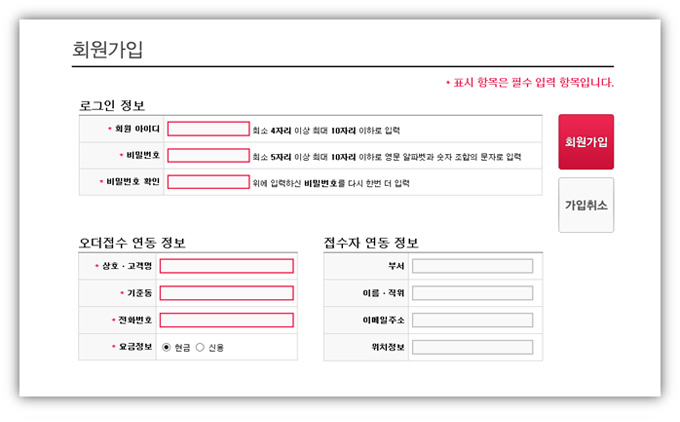 ①출발지 정보는 고객등록시 접수자의 정보가 그대로 입력되는 부분입니다. 로그인 후 자동입력됩니다.