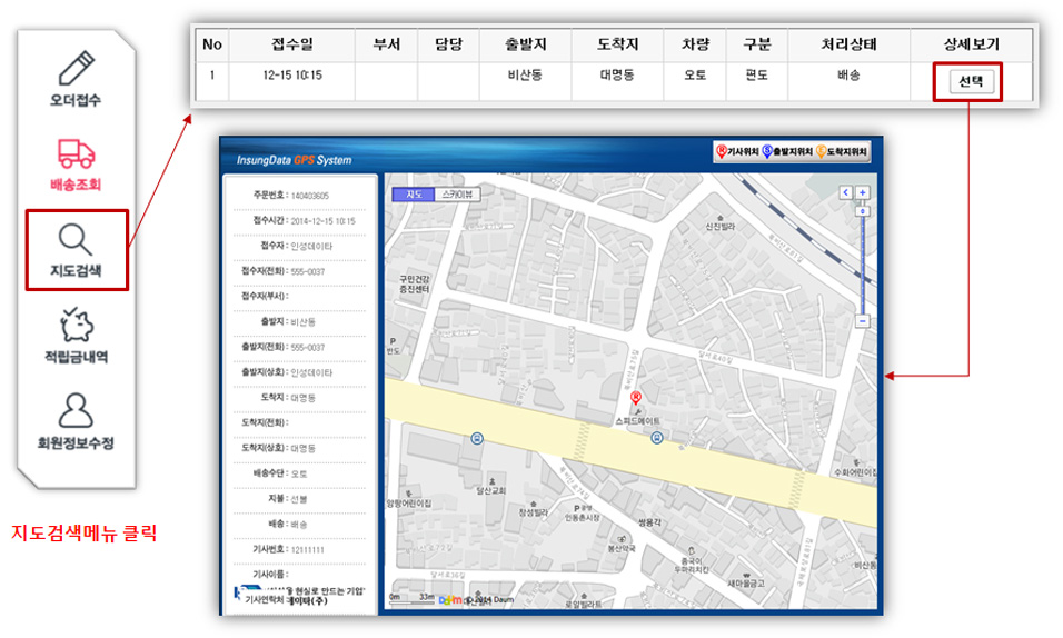 ②출발지 도착지 위치의 경우 콜센터에서 좌표를 생성 한 오더에 따라 위치 파악이 가능합니다.